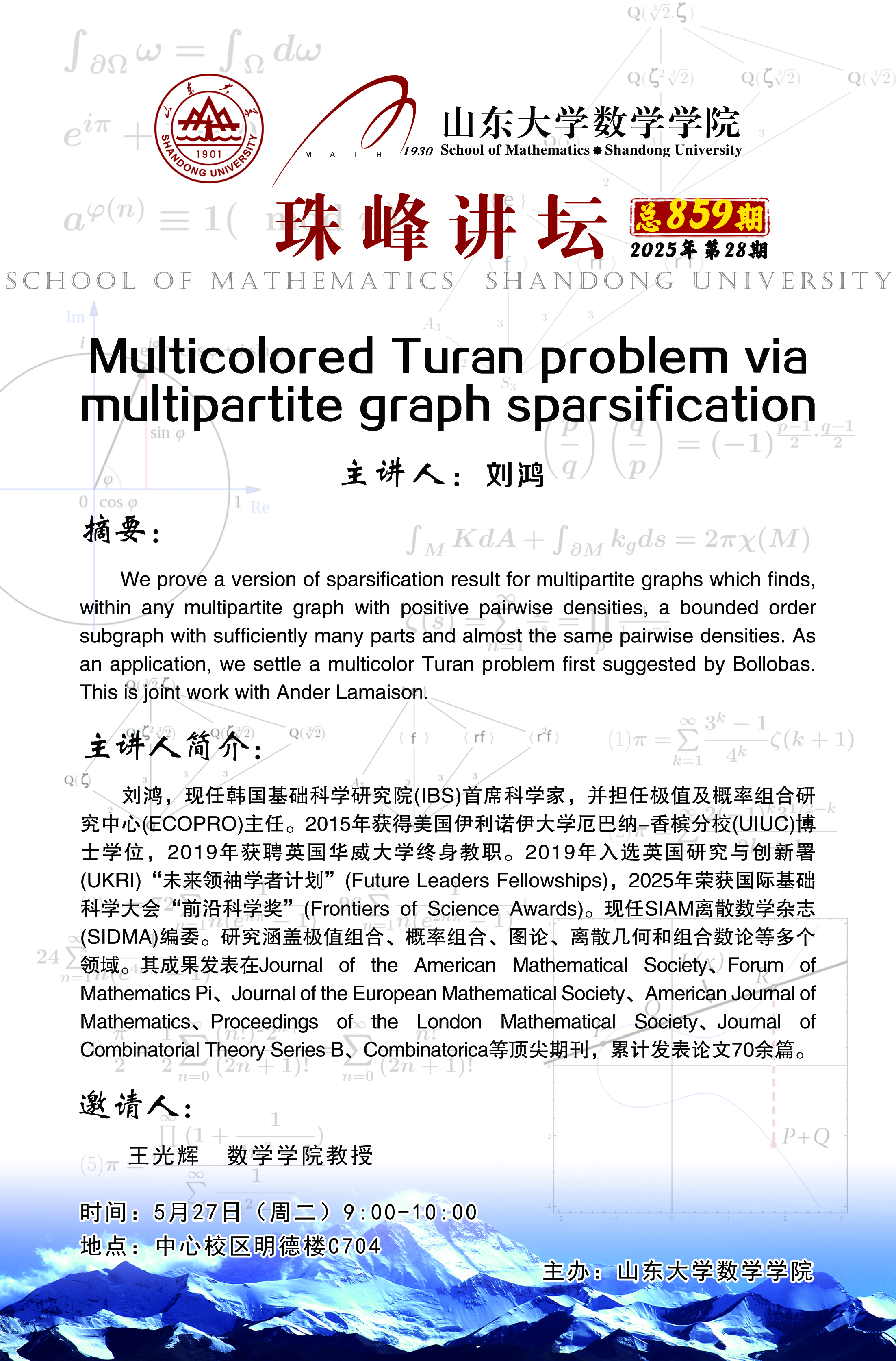 上一条:申博sunbet珠峰讲坛第860期:On the Hilbert Space of the Chern-Simons Matrix Model, Deformed Double Current Algebra Action, and the Conformal Limit
