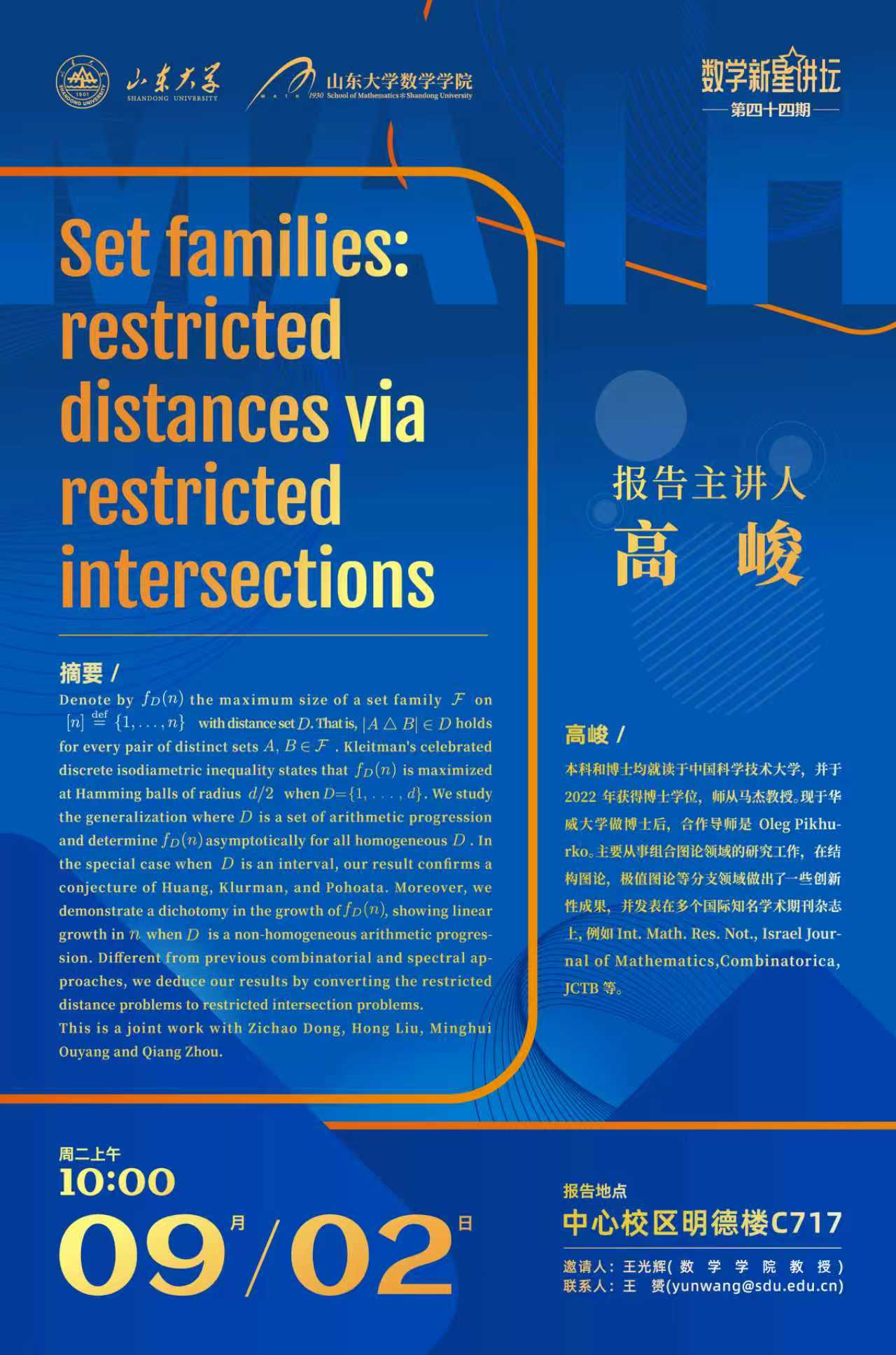 上一条:申博sunbet新星讲坛第45期:Hamilton cycles in regular graphs perturbed by a random 2-factor