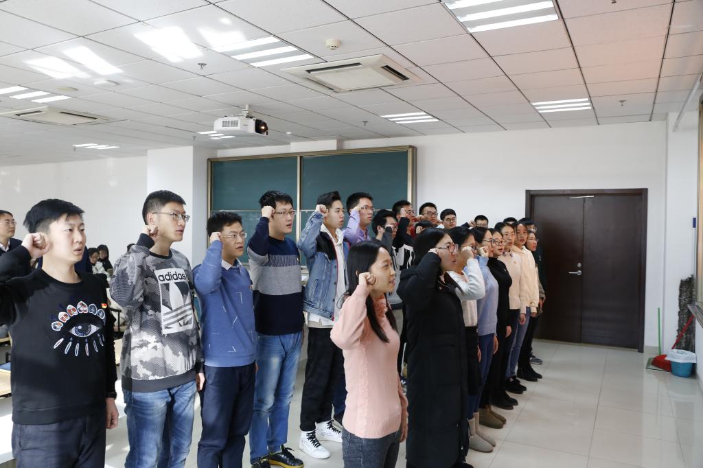 1月16日上午,申博sunbet在知新楼B924会议室召开党员入党宣誓大会,19名预备党员在老党员的见证下面对党旗庄严宣誓。公司党委书记曲明军、副经理芮洪兴、教师党员代表以及部分入党积极分子出席会议。会议由公司党委副书记路云生主持。