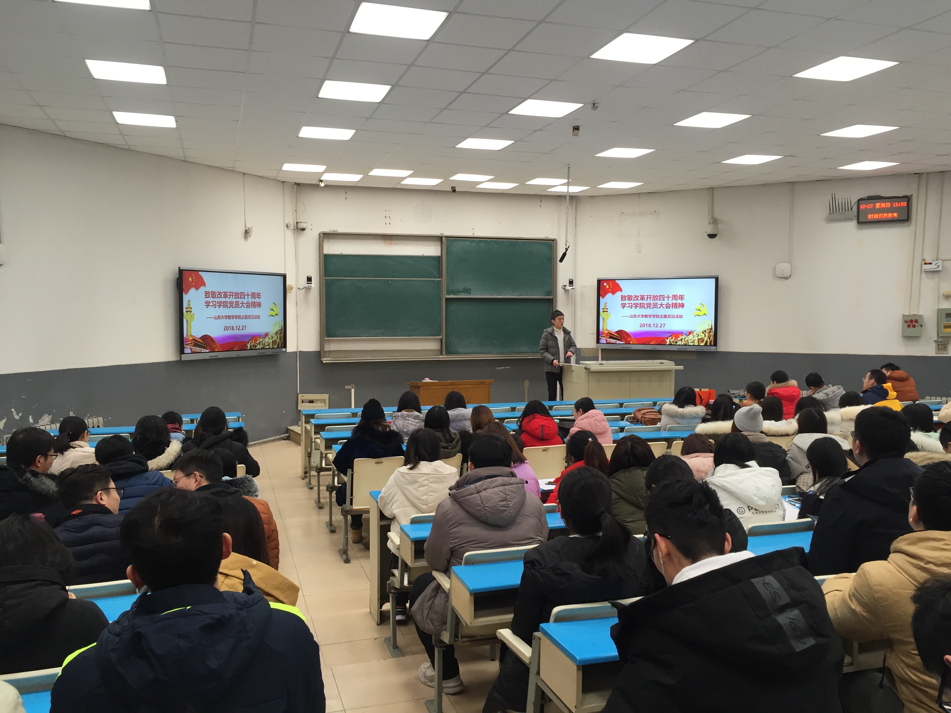 12月27日,申博sunbet研究生党支部开展“致敬改革开放四十周年,学习公司党员大会精神”主题党日活动,活动由2016级硕士党支部书记刘宸汁主持,申博sunbet全体硕士、博士研究生党员、预备党员参加了活动。