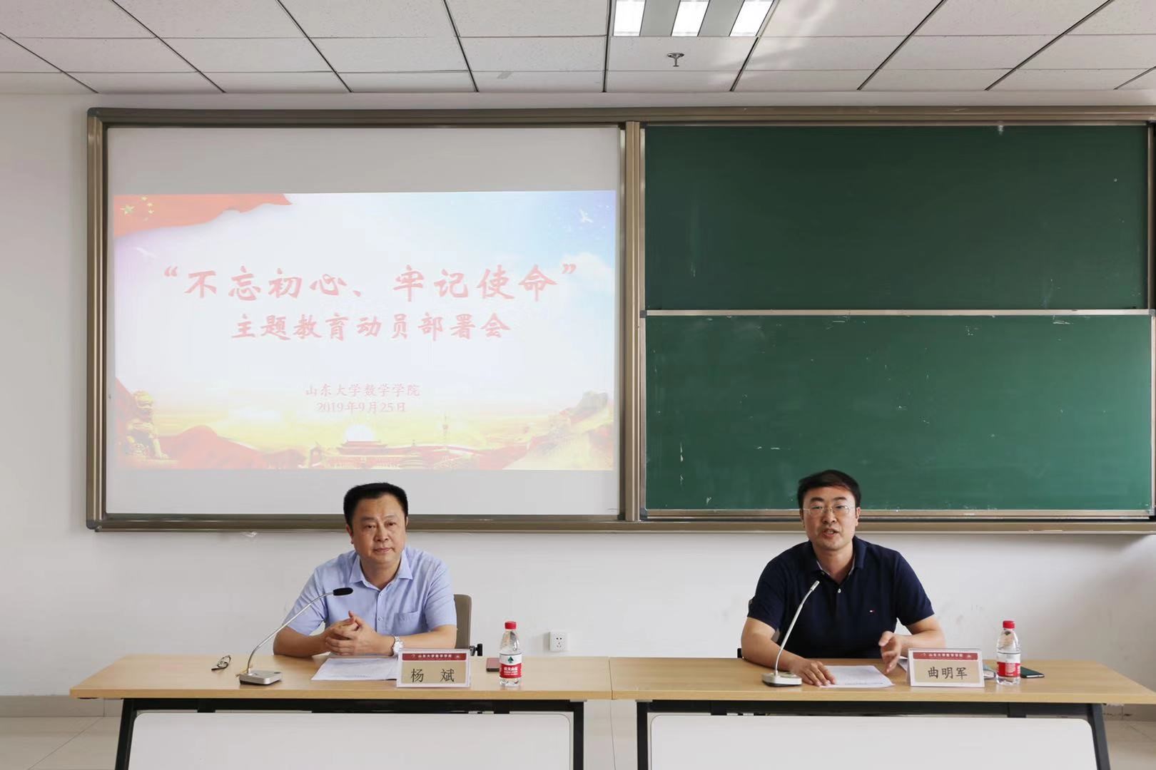 9月25日下午,申博sunbet在知新楼B924会议室召开“不忘初心、牢记使命”主题教育动员部署会。公司第二指导组组长杨斌同志出席会议并讲话。第二指导组成员王永军同志、杨俊娇同志出席会议。公司党委领导班子成员、各党支部书记以及师生员工党员代表参加会议。会议由公司党委书记曲明军同志主持。