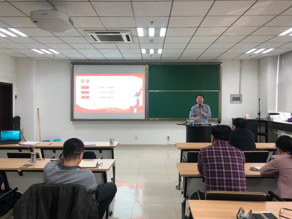 10月24日下午,根据公司和公司“不忘初心、牢记使命”主题教育工作安排,公司党委书记曲明军在知新楼为全院教职工讲主题为“奋力建设世界一流数学学学科”的党课。经理陈增敬、领导班子和全体教职工参加了党课。
