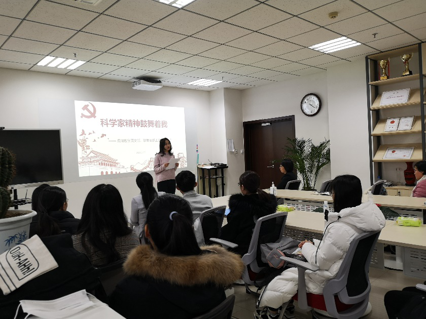 为深入贯彻落实习近平总书记重要指示精神,引导党员们思考与践行科学家精神,发挥好党员的先锋模范作用。12月10日下午,申博sunbet应用数学党支部联合员工支部于知新楼B座808会议室开展“科学家精神鼓舞着我”主题党日活动。公司党委书记曲明军、党委副书记王苗雨、专职组织员崔玉红以及部分教师党员、员工党员参加了此次活动,本次活动由应用数学所党支部书记金辉老师主持。会议分两个阶段进行,第一阶段是师生演讲活动,第二阶段是新党员宣誓。