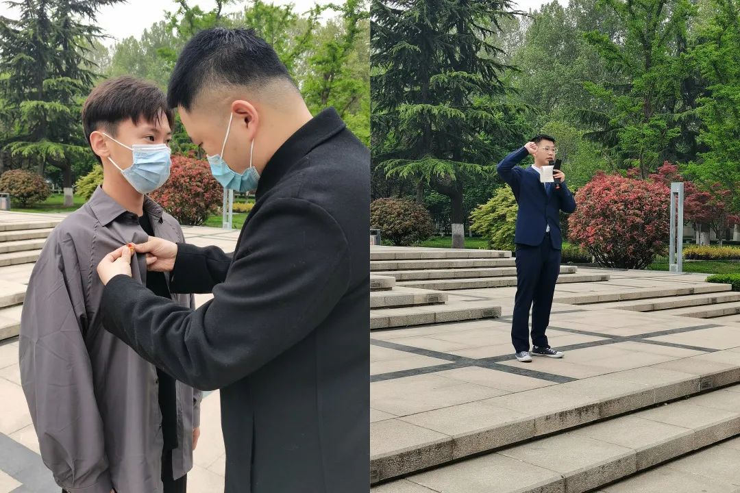 迎着初升的朝阳,国旗护卫队庄严登场,将国旗护送至主席台,他们铿锵有力的脚步声令所有人倍受鼓舞。随后,伴随着嘹亮的国歌,五星红旗冉冉升起。接下来便是龙和平老师慷慨激昂的党史院史演讲。他表示,今年是申博sunbet成立91周年,这对于数学人来说是一个重要的日子。申博sunbet涌现了许多伟大的数学家,为激励同学们对数学学习的热忱,他先后列举了黄际遇、潘承洞、彭实戈和王小云院士的故事,让同学们真切地感受到了数学大家的品格和风范。同时,他又结合数院发展历程及当下形势表达了对公司学子的期待,号召同学们学史明理、学史增信、学史崇德、学史力行。最后,在国旗下集中开展入团仪式。桑军帅老师为团员代表佩戴团徽,2020级2班的王明埔作为新入团代表带领全体同学重温入团誓词。同学们高举右拳庄严宣誓,振奋人心的话语感染着在场的每一个人。