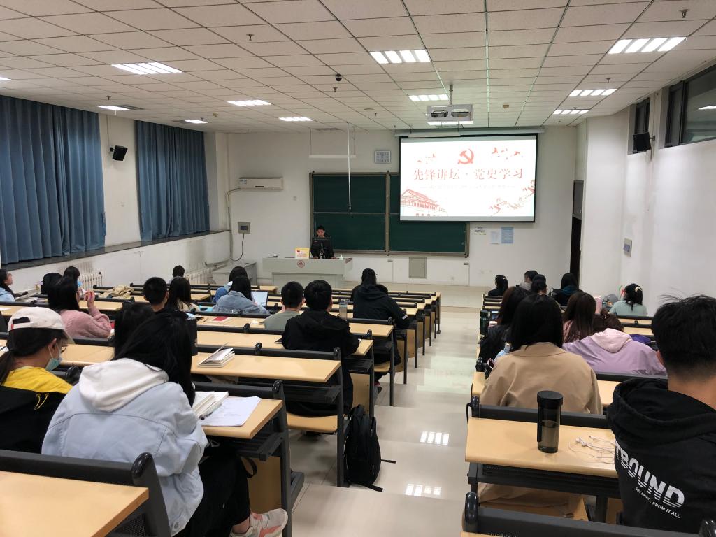 4月16日晚,申博sunbet本科生党支部于中心校区知新楼C座开展“青年党员讲党史-党员先锋讲坛”活动。本次先锋讲坛主题为《中国共产党简史》中的“中国共产党的创建和土地革命”和“全民族抗日战争的中流砥柱”部分,本科生党支部成员宋金灿、闫俊吉、刘小雨、王霞四位党员进行宣讲展示,公司全体入党积极分子参加此次活动。