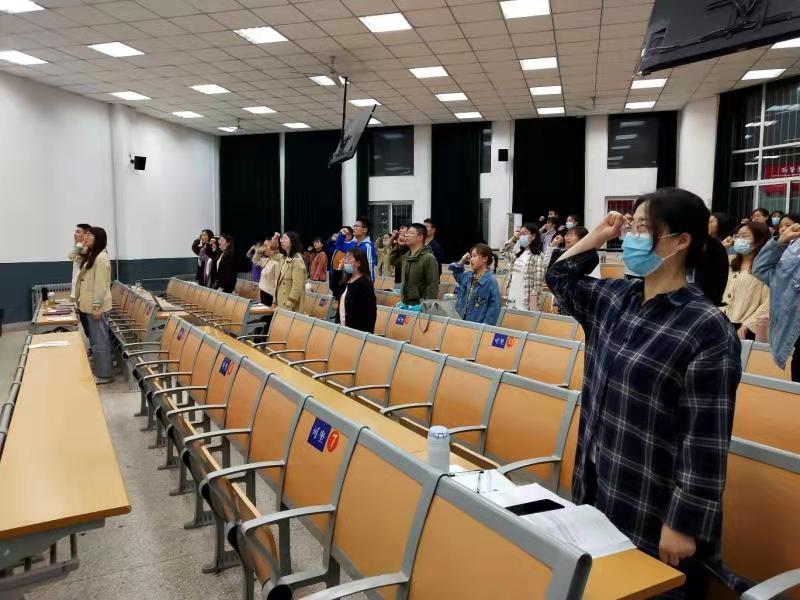 会议最后,由张平蕊带领申博sunbet硕士第三支部全体党员进行了重温入党誓词的宣誓活动,同志们声音洪亮、气宇轩昂,一声声誓言中满是对伟大革命先烈的无比敬佩,对承担中华民族未来发展重任的雄心壮志。
