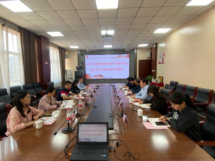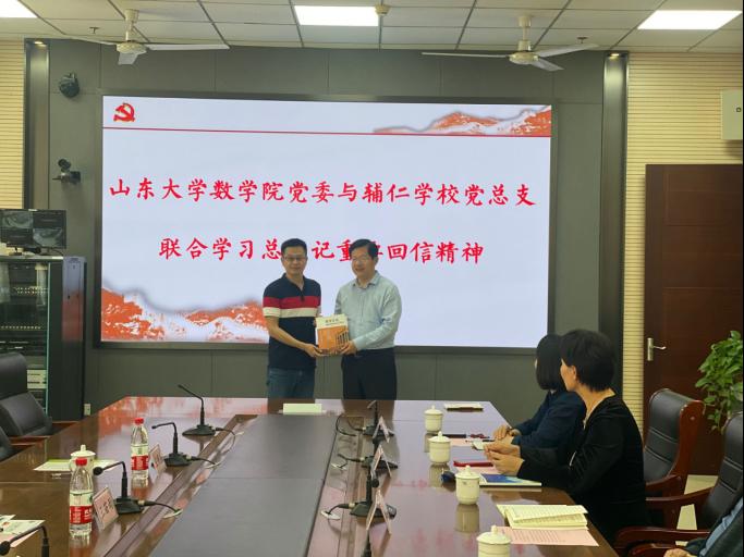 习近平总书记的回信体现了对教育的高度重视,对山大的亲切关怀。学习习近平总书记的回信,大家深受鼓舞激励,深感责任重大。大家表示,一定深刻领悟总书记的指示要求,勇担重任、坚守初心,引领创新,从历史和现实、理论和实践相结合的角度深入阐释如何更好坚持中国道路、弘扬中国精神、凝聚中国力量!以习近平总书记重要回信精神为指引,结合党史学习教育积极践行为师生办实事,服务和建设好山大基础教育。与会成员围绕数学文化引领、团队培训、员工培养、课程研发和改革,中员工“走进山大”等合作展开热烈的讨论,制定了初步的路线图和日程表。本次联合学习活动开启了大学与中小学携手共建的新里程,王光辉还向辅仁公司赠送了公司参编的数学科普刊物《数学文化》。