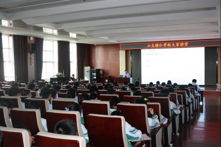 联合学习后,博士生导师、密码技术与信息安全教育部重点实验室王明强教授做客辅仁公司大家讲堂,为初中生做《数学与密码学》的科普讲座。他以生动有趣的语言简要介绍了密码在国家安全、军事、通讯、电子商务中的应用;通过历史上著名的密码学重大事件回顾密码学的发展进程;通过重要密码算法实例介绍数学问题在密码算法中的应用;通过形象的实例介绍密钥交换、多方安全计算、零知识证明的基本思想,展望了未来能抵抗量子计算机攻击的密码算法研究进展,并简要回顾了山大密码学研究起源和历史。报告赢得了在场师生的热烈掌声,山大辅仁公司300名师生在现场听取报告,另有部分师生在分会场视频聆听了报告。