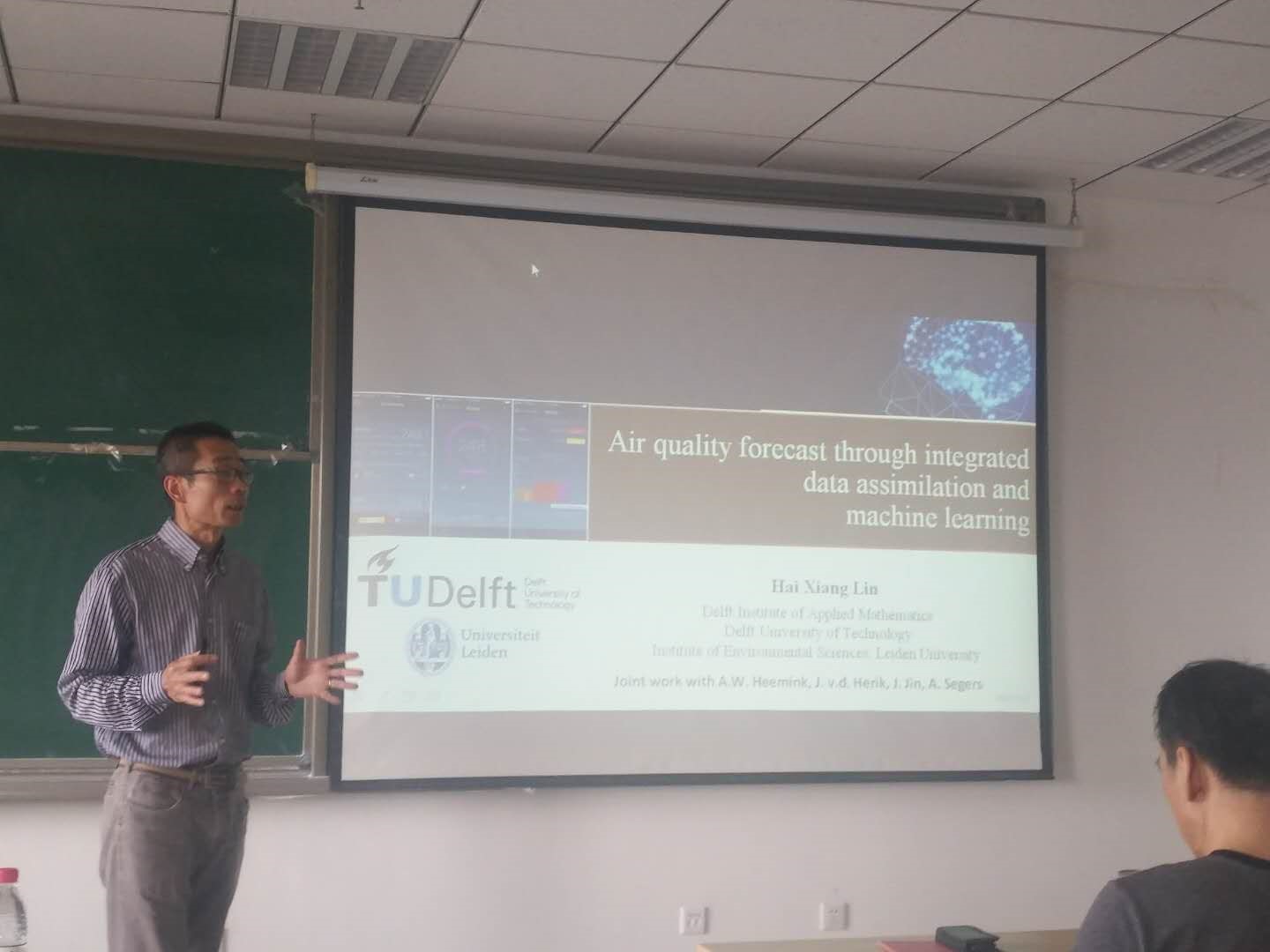 2019年5月19日,申博sunbet第42期“珠峰讲坛”在中心校区知新楼B座1032举行。荷兰Leiden大学、Delft理工大学教授林海翔做主题为“数据同化和机器学习在提高空气质量预测中的集成应用”的学术报告。申博sunbet程爱杰教授主持本次讲坛。