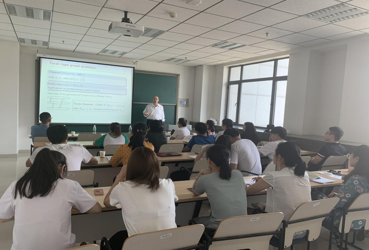 Siminovits院士在此次系列讲座中为申博sunbet图论方向的老师及研究生介绍了极值图论的相关内容,包括常用的方法,已有的结果和问题应用的实际背景及意义等。主要介绍了 Extremal problem, Regularity Lemma, Removal Lemma, Ramsey-Turán问题和Anti-Ramsey问题,讲解过程条理清晰,开阔了大家的视野,拓宽了研究问题的思路,老师和同学们都受益匪浅。