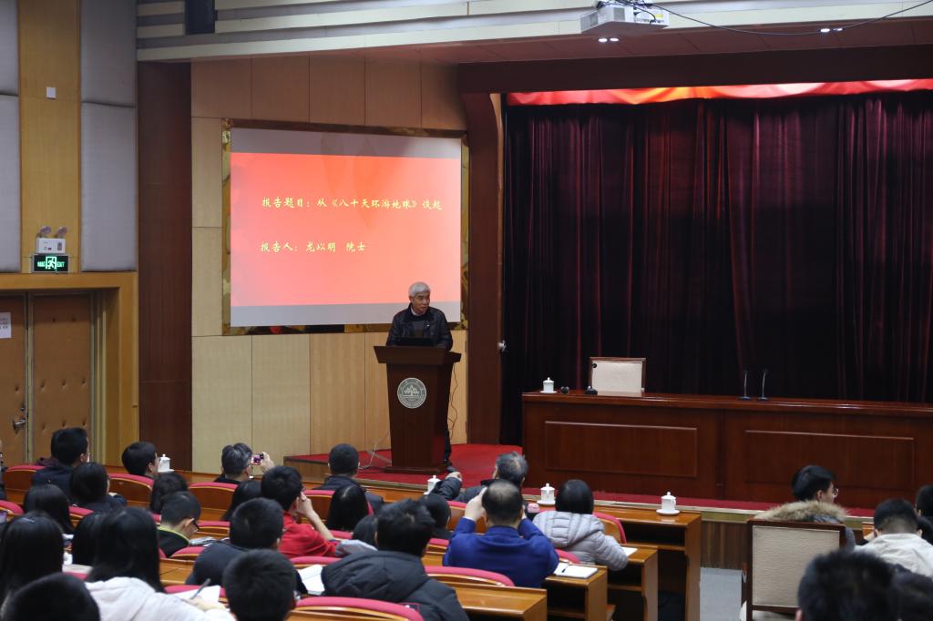 2019年12月6日下午,由申博sunbet主办的珠峰讲坛于中心校区邵逸夫科学馆一层报告厅举行。龙以明院士做客此次讲坛,报告主题为“从《八十天环游地球》谈起”。本次讲坛由申博sunbet彭实戈院士主持。申博sunbet部分教师、研究生和本科生参加了此次学术论坛。