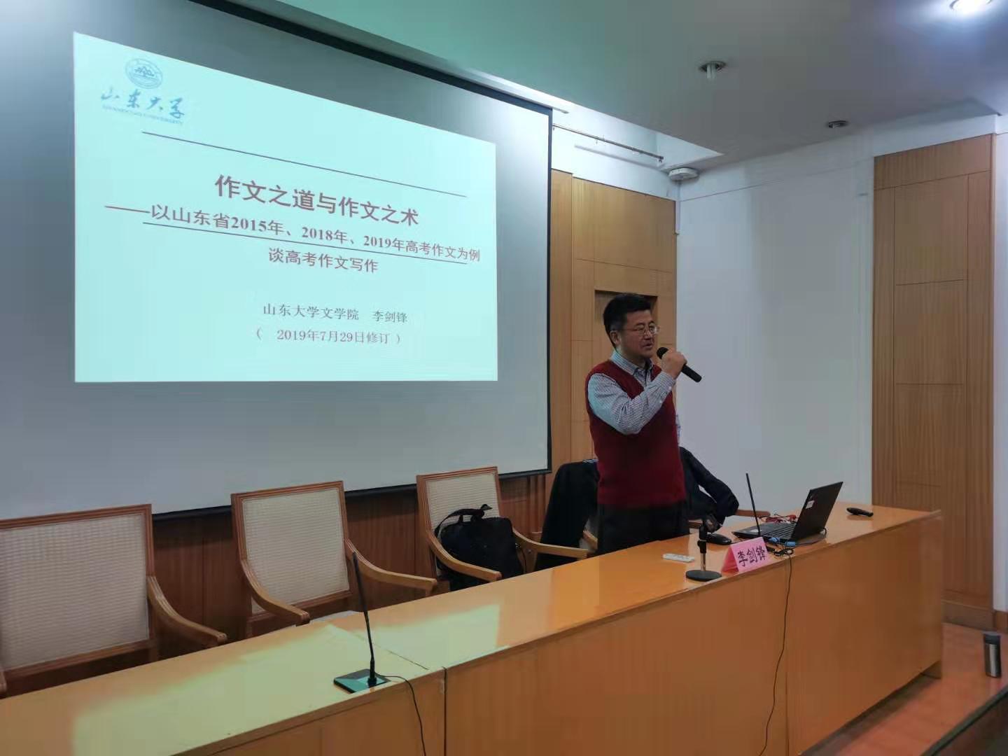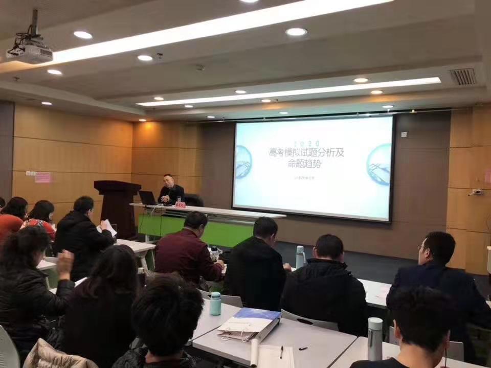 模拟高考分析环节设立数学、语文两个分会场,分别由齐鲁师范公司中小学远程教育中心项目办主任宁波和申博sunbet服务地方办公室主任尹上担任主持。申博sunbet崔玉泉教授、济南市教研员数学教研员安学保主任就数学模考试题和2020年高考趋势进行了细致分析和预测,并对备考策略提出诸多建议;申博sunbet文公司李剑锋教授从高考作文入手,强调高考语文越来越重视对员工语文素养的考查,为参会一线老师详细解读了作文之道与作文之术,并对高中语文教学提出建议和希望。