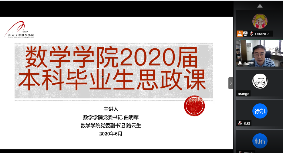 6月17日上午,公司党委书记曲明军为本科毕业生线上讲授“最后一堂思政课”,并进行就业动员工作。公司党委副书记路云生、辅导员郑柔澄及全体本科毕业生聆听授课。