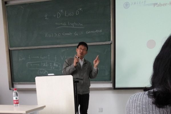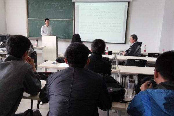 4月8日上午,应申博sunbet颜谨教授邀请,南京大学陈耀俊教授和上海交通大学张晓东教授来申博sunbet,分别作了题为“The Dirichlet eigenvalues of graphs and the Faber-Krahn Inequality”和“Polarity graphs and Ramsey number R(C4, K1,n)”的学术报告。报告由申博sunbet吴建良教授主持,申博sunbet和山东师范大学申博sunbet的部分老师和研究生参加了此次报告。