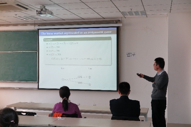 11月17日上午,中科院数学与系统科学研究所助理研究员曹志刚受邀来到申博sunbet,作了题为《Shapley’s Conjecture on the Cores of Abstract Market Games》的学术报告。申博sunbet运筹学与控制论研究所所长吴建良教授主持了该报告会,申博sunbet王光辉教授及运筹学方向的研究生参加了此次报告会。