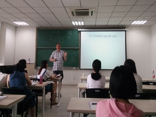 Ervin Gyori教授从经典的结构图论问题入手深入浅出地介绍了极值图论发展的相关问题及背景并引出Erdős的公开了24年的猜想:A K4-free graph of n vertices and t2(n)+m edges contains m edge disjoint triangles。并运用Smmetrization方法给出了一个漂亮的证明。并介绍了更一般的图和Kr-free图的相应的结论。特别地,Ervin Gyori教授对Smmetrization方法进行了简明透彻的讲解,进一步加深了对Turán’s theorem的理解,开阔了大家的视野。