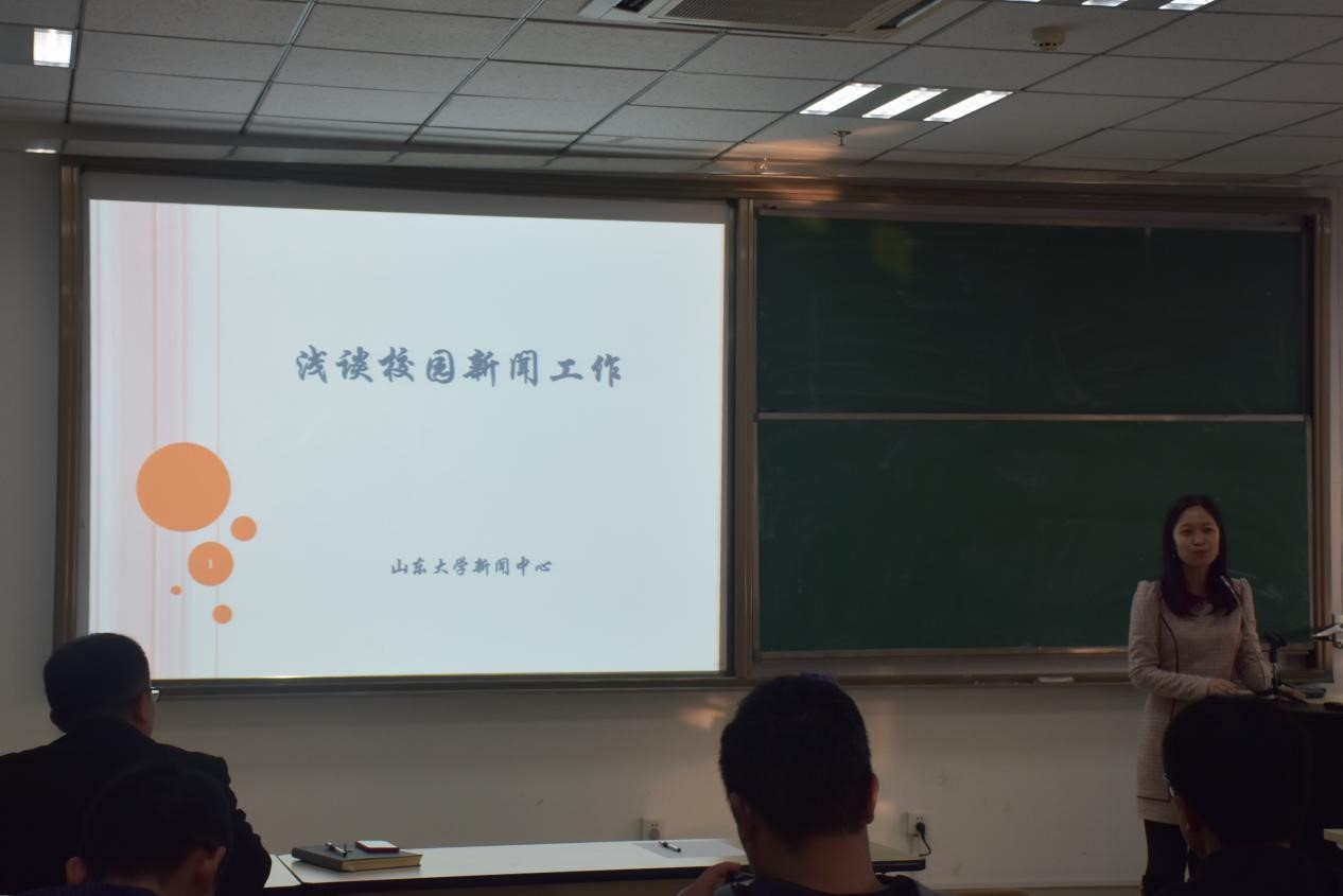 刘婷婷以“浅谈校园新闻工作”为主题,从新闻撰写和图片拍摄两个方面和大家分享自己从事新闻工作的心得体会。刘婷婷将新闻撰写分为理论、实务、延伸三个部分。理论方面,她剖析了新闻与宣传的概念,指出一名校园记者应该具备四种基本能力:政治鉴别力、协调沟通力、学习创新力和执行操作力。实务方面,刘婷婷讲到,导语的表述应突显新闻的重要性;正文的写作应围绕主题,详略得当;结尾部分应进行适当的渲染,提升稿件层次。延伸方面,刘婷婷介绍了自己在新闻工作中总结出的注意点,比如新闻写作要追求与时事热点相结合,跳出公司公司的局限,扩大视野;注重稿件的前期准备与后期核实;学术新闻应突出其学术性,开幕式致辞等内容简要叙述,具体研讨环节和重点发言要详细描述等等。
