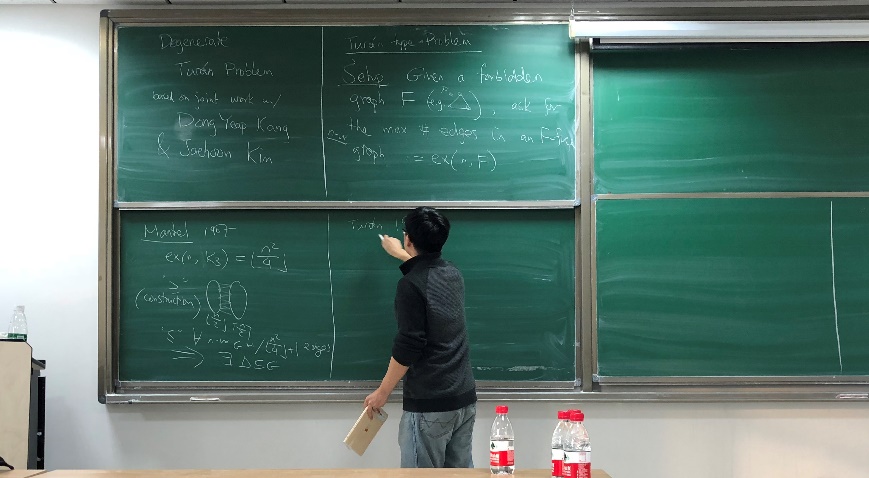 12月19日,英国华威大学刘鸿研究员应申博sunbet王光辉教授的邀请到申博sunbet,作题为“Degenerate Turán Problem”的学术报告。报告由王光辉教授主持,申博sunbet运筹学与控制论的部分教师和研究生参加了本次报告。