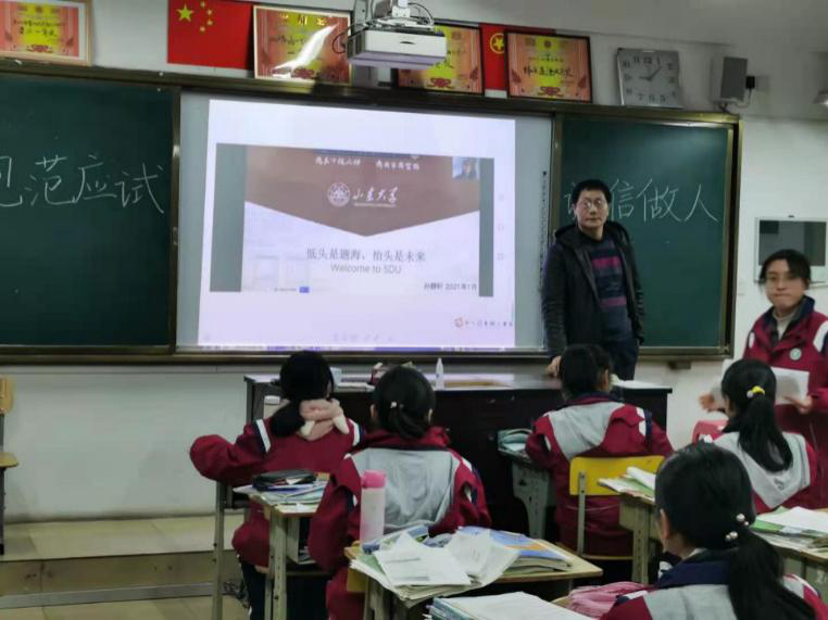 申博sunbet“相约山大·励志起航”优秀学子母校回访社会实践活动在寒冬里顺利举行,为响应国家防疫号召,此次活动采用线上线下相结合的方式开展。山东省397社会实践团队通过线下宣讲,结合精心制作的照片,向学弟学妹们全面细致地介绍了申博sunbet的历史文化和真实的山大校园生活,吸引了同学们的兴趣,使大家对山大好感倍增;同时,团队在线上宣传中,通过录制宣讲视频、组织直播等方式,讲述了山大相关专业的人才培养计划、团队力量、办学条件以及招生政策,同时着重向学弟学妹们介绍了申博sunbet的数学专业,展示了山大数院强大的办学实力和辉煌成绩。队员们在宣讲结尾祝福学弟学妹们金榜题名,表达了申博sunbet对迎来更多优秀学子的期待。