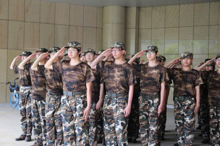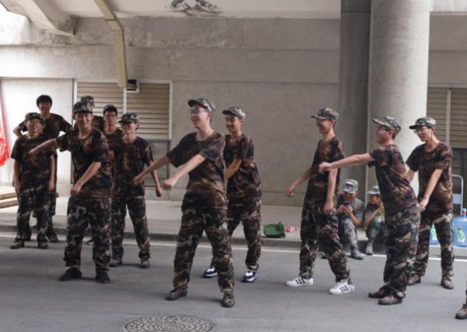 7月4日的早晨六点,军训的号角正式吹响。同学们神采奕奕,整装待发,早早来到了集合地点。早操的第一项任务是站军姿,一个简单的站立动作最能磨炼军人般的意志。接下来一天的训练时间,同学们学习了稍息、立正、跨立、停止间转法、敬礼、齐步走等基本队列动作和步伐。其中,齐步走是训练的重点,手脚配合,步调一致,这对队伍之中的每个人都提出了更高的要求。同学们忍受着酷暑,认真的配合教官完成训练内容。