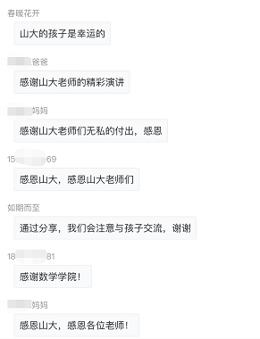 辅导员桑军帅、宋金灿、毛洁玲分别介绍了不同年级员工的主要特点和面临问题,以及家长们关心的专业、保研、学业、毕业去向等情况。随后,曹丽丽进行主题分享,她从老员工心理状态、数学学科员工特点、父母与孩子沟通的技巧及需要避免的问题等角度入手,并结合咨询案例展开介绍,还向家长们推荐了相关书目。