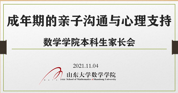 2021年11月4日,申博sunbet举办了主题为“成年期的亲子沟通与心理支持”的线上家长会。公司心理咨询中心曹丽丽、公司党委副书记路云生、各年级辅导员和本科生家长参加了家长会。会议由2018级辅导员老师郑柔澄主持。