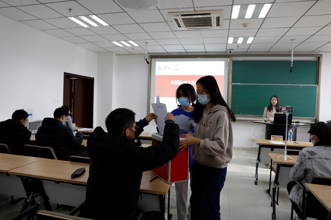 致辞完毕,大会进行第二项:选举产生共青团申博sunbet第十七次代表大会第三代表团申博sunbet代表。在简要地介绍各候选人情况后,57名到会团员代表及青岛校区11名线上参会团员代表进行投票。