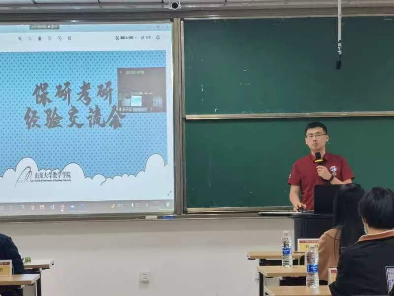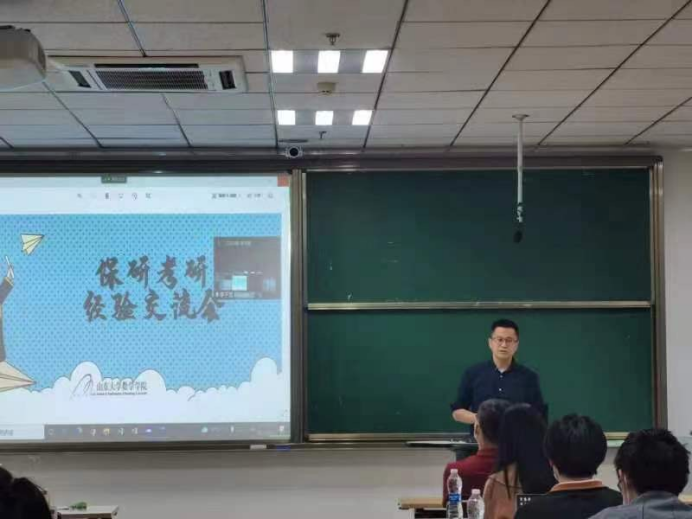 4月16日晚, 由申博sunbet本科生党支部和员工会联合主办的数学学科保研考研经验交流会顺利举办,公司党委书记王光辉教授、副经理刘丙强教授、党委副书记张艳强、辅导员郑柔澄及270余名同学参会。