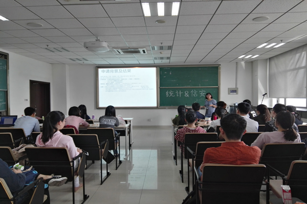 罗宁同学为大家讲解出国申请的注意事项和分享语言考试的经验。首先,她强调了推荐信的重要性,并强调同学们在公司的选择过程不能完全依靠中介的推荐;同时,有一定的国际出国交流背景最好。关于语言考试经验,罗宁同学推荐了相关的网站及相关的技巧。接下来,唐肖潇以简洁的方式介绍了她在语言考试的准备过程和心得,总结出背单词才是王道,数遍刷词绝不会出错,并且向大家分享总结的文件等。最后,2014级统计班李源同学向两班同学们分享了学习数学分析和高等代数的技巧,并推荐了相关的优质书籍。