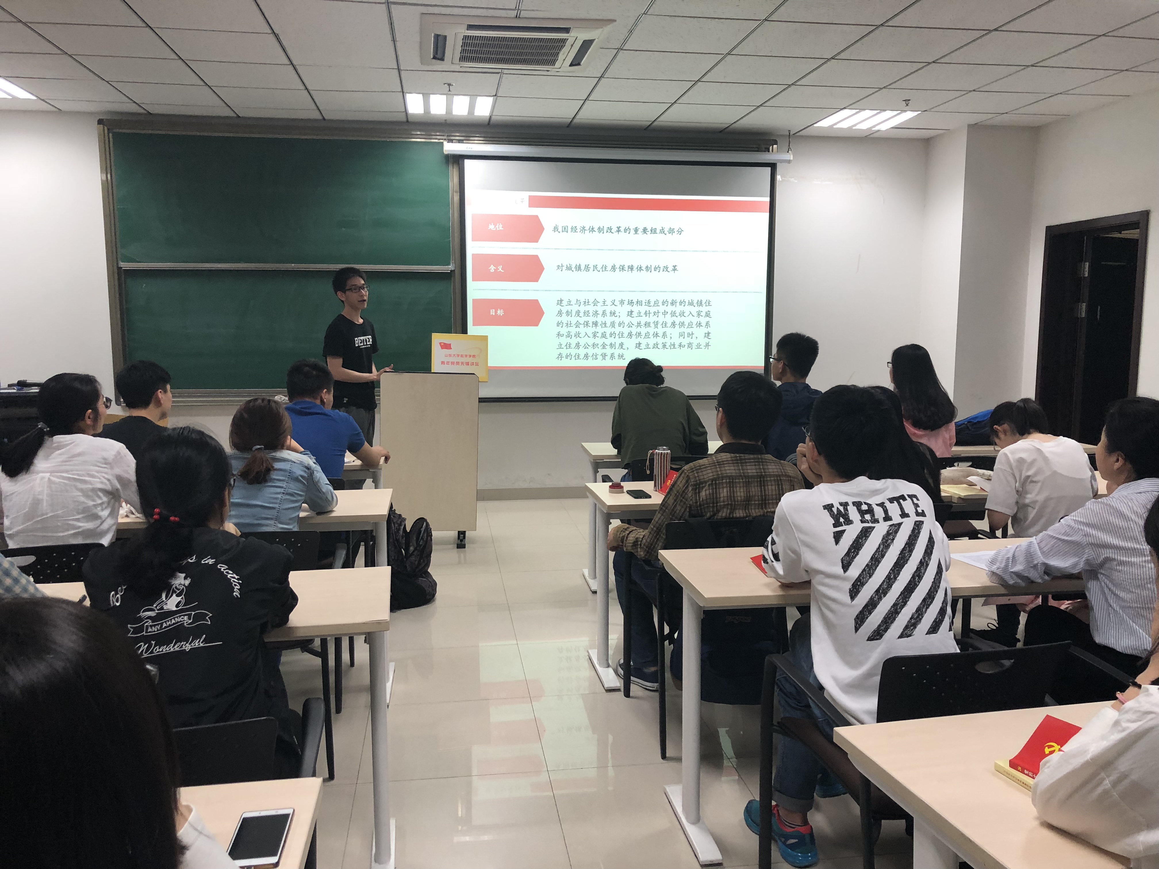 4月2日晚,申博sunbet于中心校区知新楼B座开展“青年党员先锋讲坛”活动,申博sunbet辅导员鲁皓担任党课老师,本次讲坛由2014、2015级本科生党支部承办,该党支部牛嘉桐、陈亚新、刘朝锋、王楚楚四名成员担任主讲,申博sunbet全体入党积极分子参加此次活动。