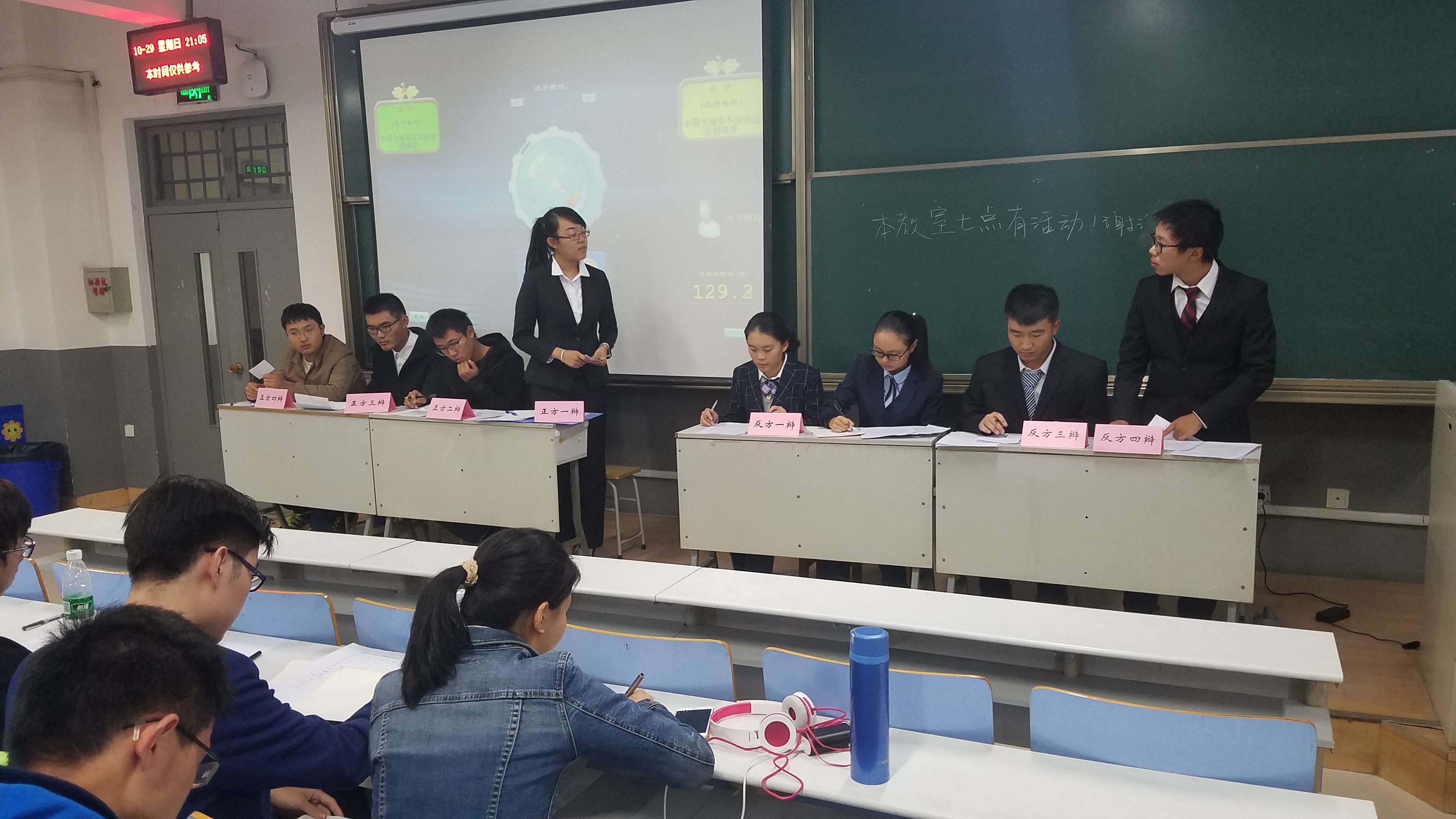 首场比赛的两支队伍辩题为“中国大陆应不应该实施器官交易合法化”。正方在立论中从如今中国大陆器官移植供不应求的状况入手,通过使器官交易合法化,从而增加可供移植器官的供体数量的观点表达了本方的坚定态度。而反方则认为,合法化是对人的物化,四位辩手从康德的“人非工具”理论出发,提出这一政策实施后的诸多弊端,有力地反驳了正方的论点。评委们在点评中,指出了队员们比赛中的台风、气质等外在表现方面仍需提高的方面,对他们提出了更高的期望。最终,正方获得本场比赛胜利,成功晋级冠亚军决赛。首场比赛结束五分钟后,第二场比赛打响,辩题为“当今中国大城市应不应该征收拥堵费”。正方通过征收拥堵费所带来的调节车流治堵的方便快捷,立竿见影的优势,以及利用拥堵费所带来的公共收入改善公共交通,进一步改善堵车情况两点论证了本方观点。反方不甘示弱,希望利用增设停车位、重新规划路线等六种方式组成的新体系取代征收拥堵费这一方式,同时在民众意愿,执行难度等方面对拥堵费政策进行了反驳。两队针锋相对,言语交锋激烈。在评委点评阶段,几位学长学姐都肯定了辩手们一周以来的成长与进步,就辩题以及政策辩本身的操作方法提出了各自的理解。最终,正方获胜,成功晋级决赛。