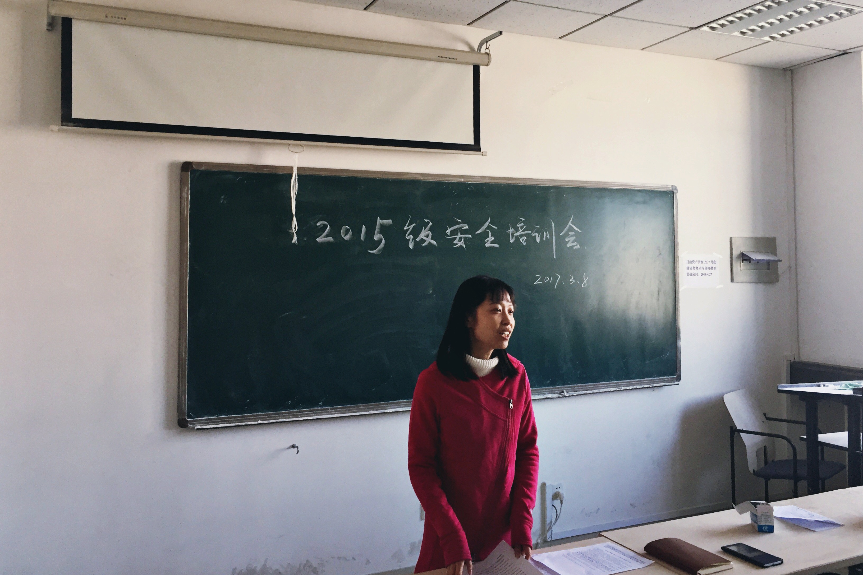 会议伊始,鲁皓老师为班委们宣读了最新的宿舍管理条例,并再次明确了班委与各个宿舍一对一负责的关系。她要求大家能及时对宿舍内的突发情况做出反应,对同学们反常情况有所察觉。此外她还强调宿舍内严禁使用违章电器,诚恳地告诫同学们安全问题没有小事。