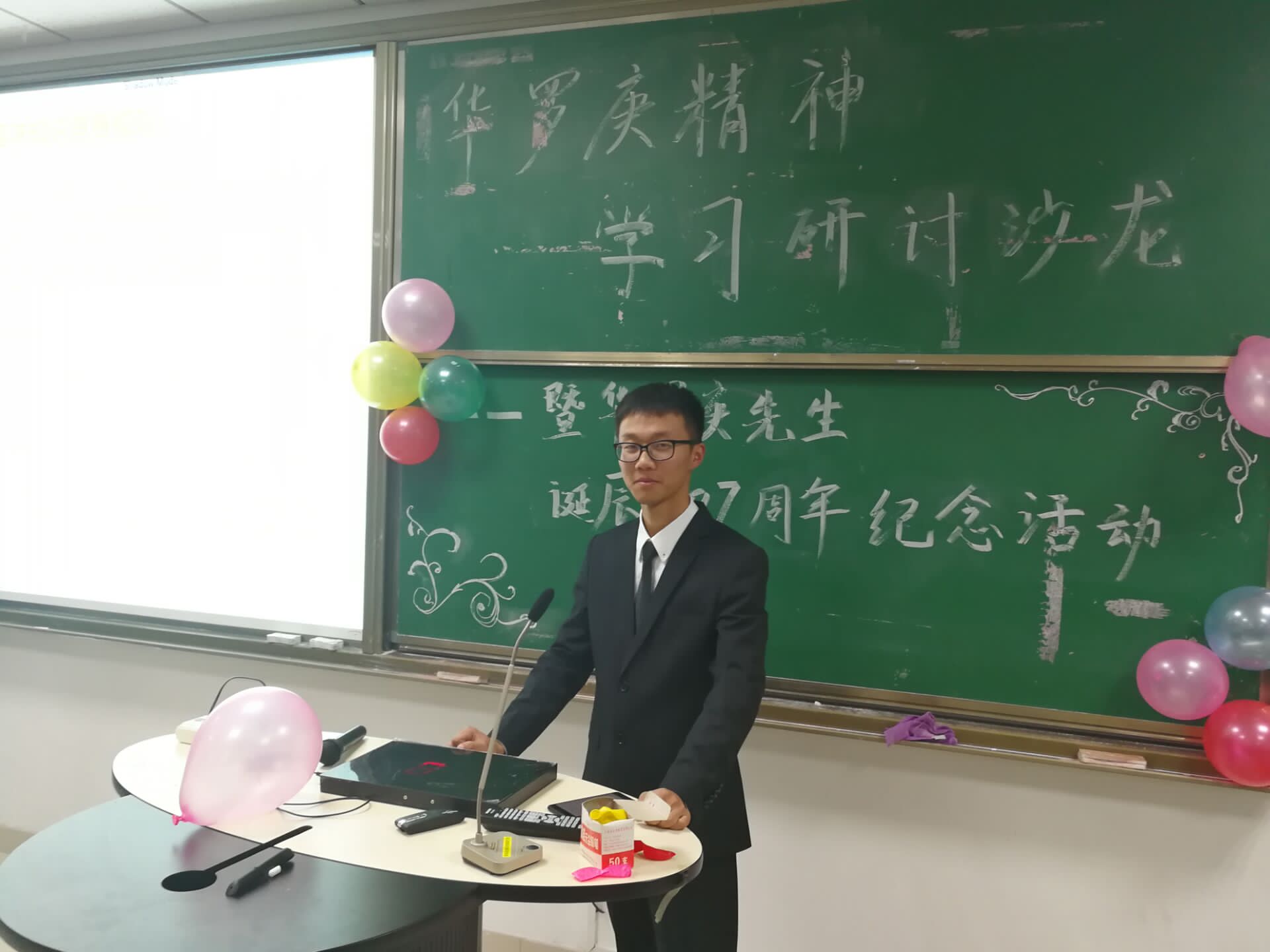 活动伊始,主持人杨博涵播放了有关华罗庚先生传奇一生的简略的纪录片,使与会人员对华罗庚先生有了大致的了解。随后,由刘昕彦具体介绍了华罗庚先生从儿童时期到在东京病逝的详细事迹。介绍结束后,由15级两位优秀的学长分别分享了自己的学习经验:黄泰榕,15级基地班员工兼华罗庚协会会长,给大家提了不要只是为了绩点学习的建议,他提倡大家要广泛学习,不能仅限于课堂上老师讲解的内容。他鼓励大家积极的参加科创活动,并分享了自己参加科创活动的经历与心得。单嘉伟,15级基地班总绩点第二的优秀学长,分享了自己用通俗的思路理解数学概念、数学问题的独特的方法,同时他也鼓励大家积极地参加创新型学术活动。