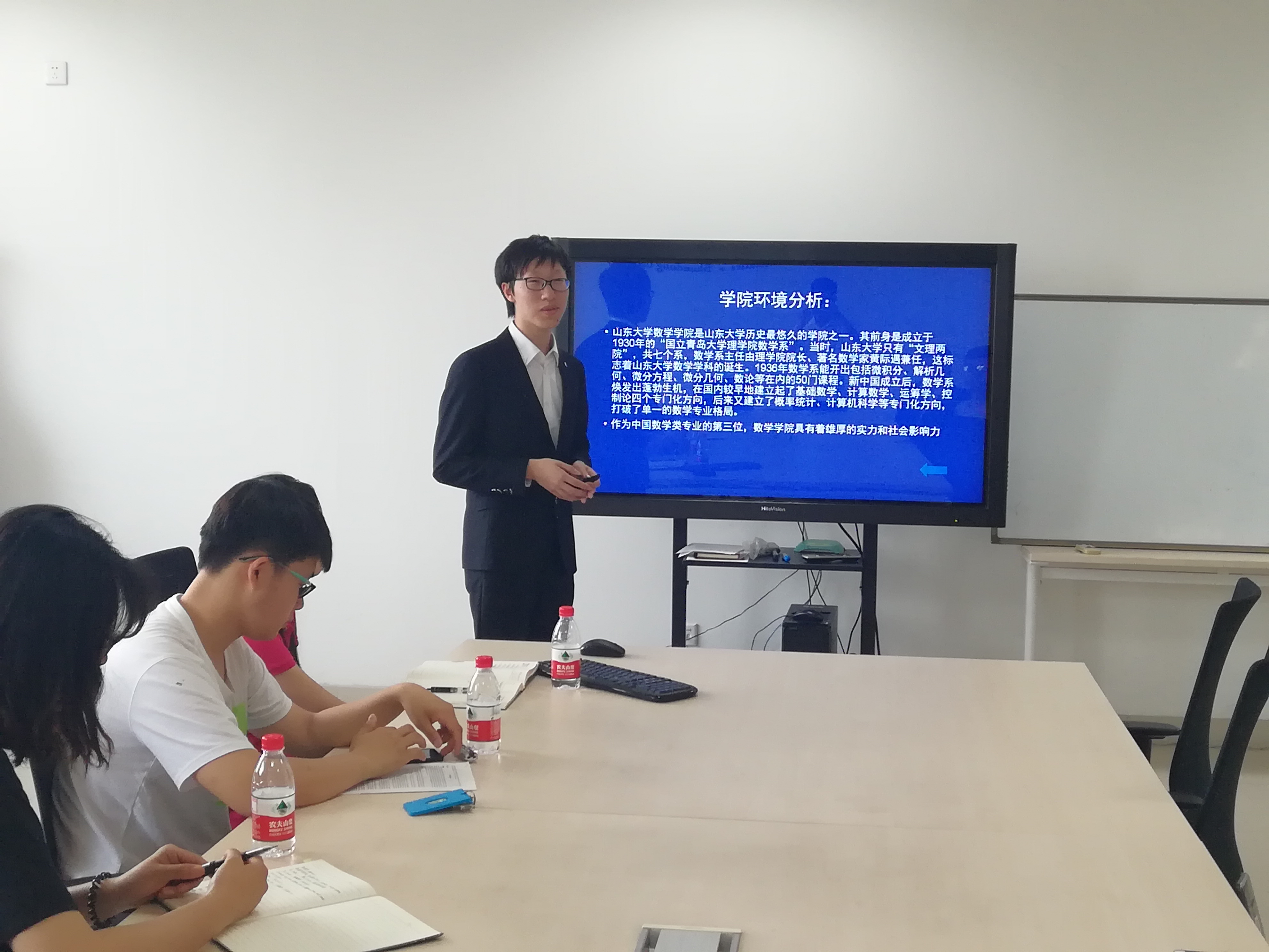 会议伊始,鲁皓老师解释了举办职业生涯规划大赛的意义,点出了职业生涯规划对于老员工的重要性,并对参赛选手进行了简短的介绍。第一位上场的选手是张仕卓,他在自己的演讲中表现了自己对于计算科学的强烈兴趣,表明自己将在今后的十年中,通过大学学习、考取硕士研究生以及硕士研究生阶段的学习,使自己不断得到丰富,成为能够推动高端技术发展的人才。他还表明自己不以名利作为自己成功的标准,自己家人过好生活,家庭和睦,充实过好每一天是他的理想生活。第二位上场的是张帅,他在演讲中分析了申博sunbet的优势,并且分析了今后数学专业员工可以就业的几个方面,分析了金融、精算、人工智能等方面的现状。他表示自己现阶段的计划是学好专业知识,提高自身素质,中期的计划是在尝试多个行业之后找到最适合自己的岗位,长期的计划是不断奋斗,为人类事业做出自己的贡献。最后一个上场的是杨理毅,演讲开始之前,他对自己的优点和缺点进行了全面的分析。随后他表示自己的价值观是以有更高发展空间为成功而不是更高薪水。他随后又分析了公司环境,社会环境。演讲过程中,表现出了他对于金融行业的强烈兴趣。他说道未来自己将考取CFA证书,考取托福以期出国成为一个金融分析师。