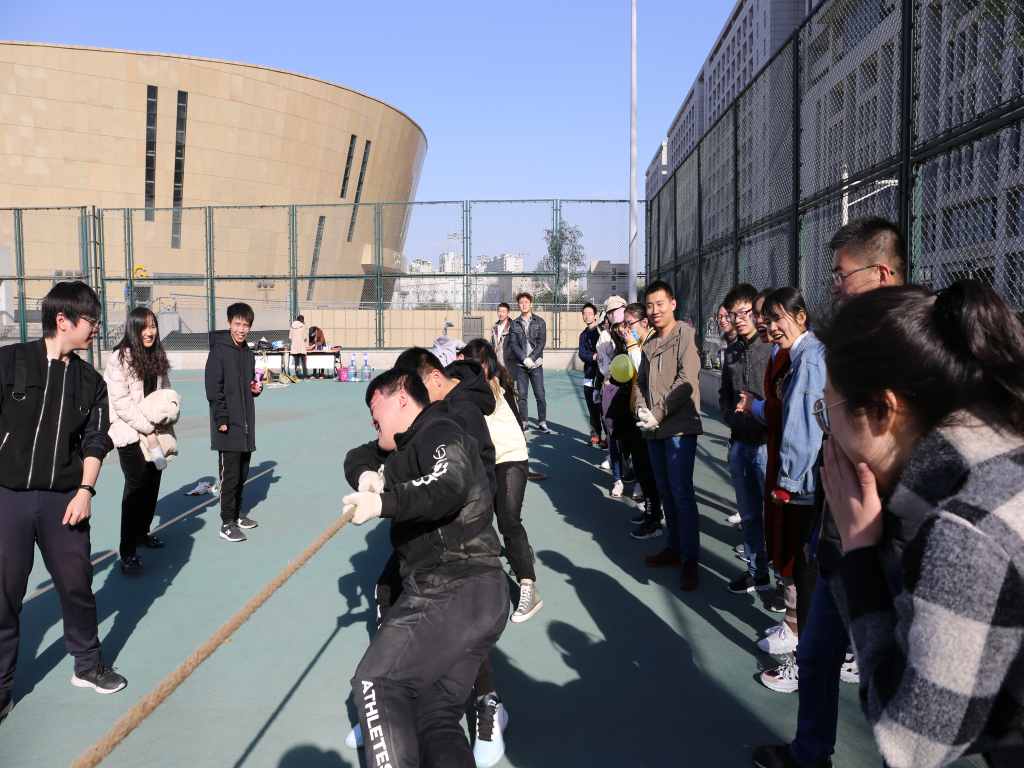 为增加趣味性,在师生运动会中研究生还特别举办了趣味运动项目。无论是“背靠背”,“三人四足”还是“猛龙过江”,无一不在反映出策划者的良苦用心,既体现了运动员之间的相互协作精神又不失勇夺第一的进取心。最能为同学们带来欢声笑语的当属“人体copy”这个项目,动作者和猜谜者的“貌合神离”使得大家忍俊不禁,两人的“心领神会”又时而赢得大家的拍案叫绝,此次趣味运动会的重头戏当属压轴“拔河”,这个项目旨在考验研究生班级的竞争意识和集体凝聚力,“心往一处想,劲往一处使”这正体现了当代研究生只有“相互合作”,才更能“互利共赢”的道理。比赛过程中,路云生积极与员工进行互动,现场情绪一度高涨,展现了公司和谐融洽的师生关系。场上笑逐颜开,场下温情浓浓,同学上前主动要求帮忙工作人员的情况时有发生,显示了公司员工积极向上的精神风貌,彰显了申博sunbet同学的凝聚力。最终,申博sunbet第一届师生运动会研究生趣味项目以综合成绩一班第一名,二班第二名,三班第三名圆满结束。