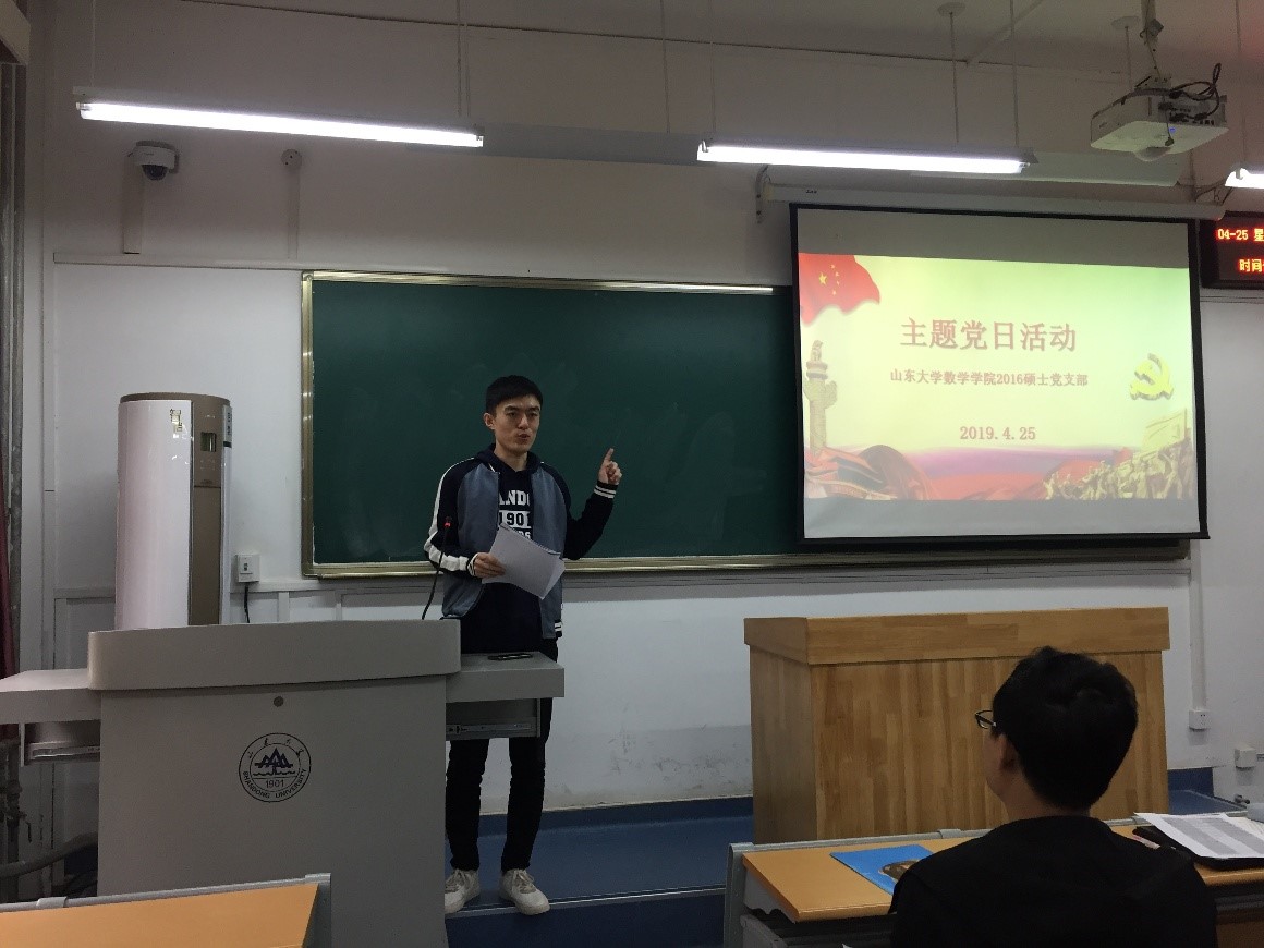 2019年4月25日,申博sunbet2016级硕士党支部开展主题党日活动,活动由党支部书记刘宸汁主持,支部全体党员参加了活动。