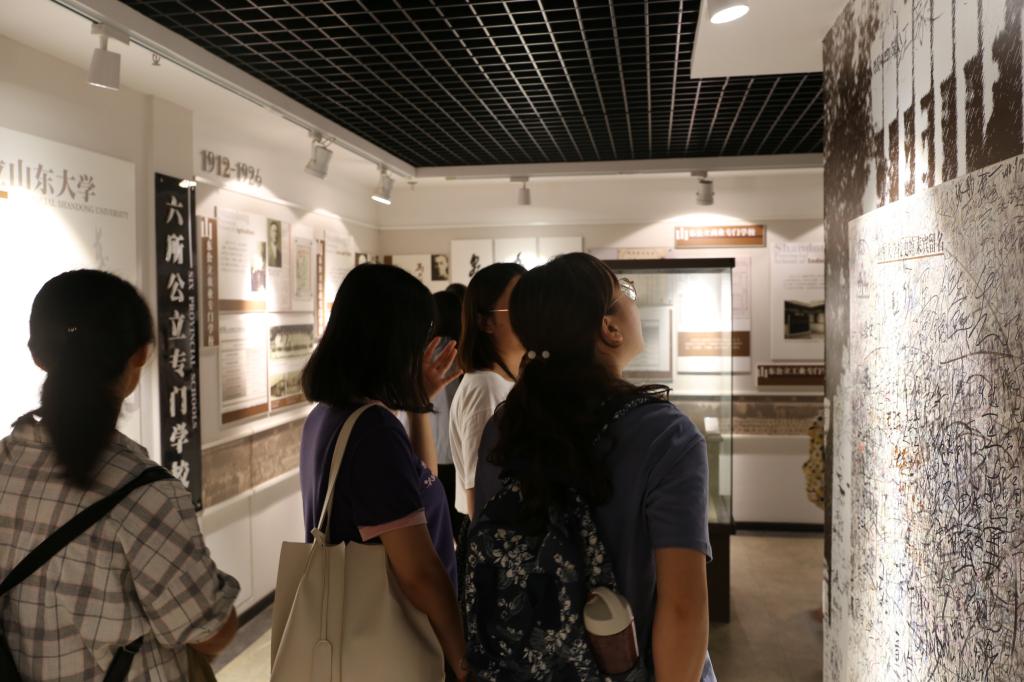 一块块整齐的展板,一张张泛黄的照片,一位位熟悉的名字,李健吾,童第周,闻一多等无不昭示着山大的骄傲。在数学展板面前,每一个数学学子都工整肃穆,崇拜着前辈们的砥砺前行,欣赏着大师们的开天辟地,赞叹着名家的学术风骨。
