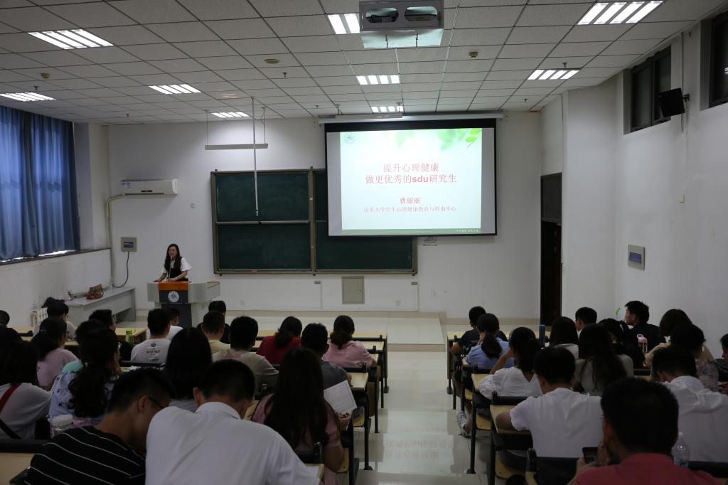 2019年9月6日下午,为了增强研究生心理健康意识,提高研究生心理调节能力,树立科学健康的生活方式,申博sunbet员工心理健康教育与咨询中心的曹丽丽老师为大家带来了一场别开生面的心理健康讲座。讲座的主题是《提升心理健康 做更优秀的sdu研究生》,2019级申博sunbet研究生参加了此次讲座。