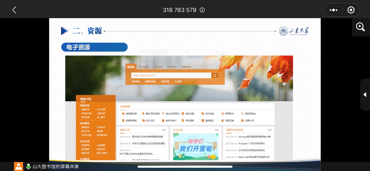 9月16日下午,申博sunbet图书馆信息咨询中心的老师为申博sunbet2020级研究生新生做了“图书馆服务与资源举要“的线上讲座,给同学们介绍了山大图书馆的馆藏以及查阅相关资料的方法。