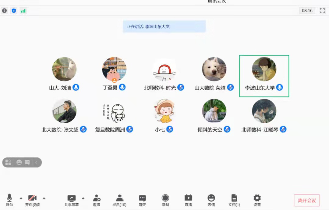 本次交流会由申博sunbet数院研会主席丁圣男主持,申博sunbet数院研会新媒体部长李波、学术部部长荣腾同来自北京大学、复旦大学、北京师范大学的11名代表齐聚线上交流。