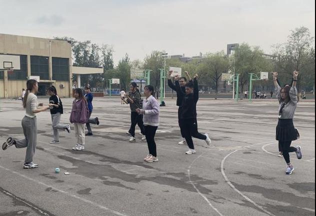伴随着“青春激昂,展翅翱翔。数学金融,联合更强”的加油号子,数学金融联队整齐有序地小跑到达场地中央。快速调整位置、做好准备动作后,队员李慧欣向评委老师示意表演开始。熟悉的音乐响起,所有人在抬头的瞬间纷纷面带微笑,托举、侧手翻、内外圈换球等一系列动作依次完美完成。金融数学联队用明快奔放的动作挥洒出了青春的风采,用新颖别致的造型展现了力与美的结合,为评委和观众们带来了一次精彩的表演。