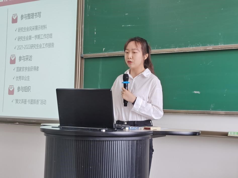 开幕式后,大会审议并通过了《申博sunbet研究生会章程(草案)》。随后,研究生会主席丁圣男作题为《革故鼎新 锐意进取 团结合作 继往开来》的工作报告,她回顾了研究生会在组织改革、服务成长、特色工作三方面所做出的努力与成果。鲁皓为2021届研究生会骨干成员颁发证书。