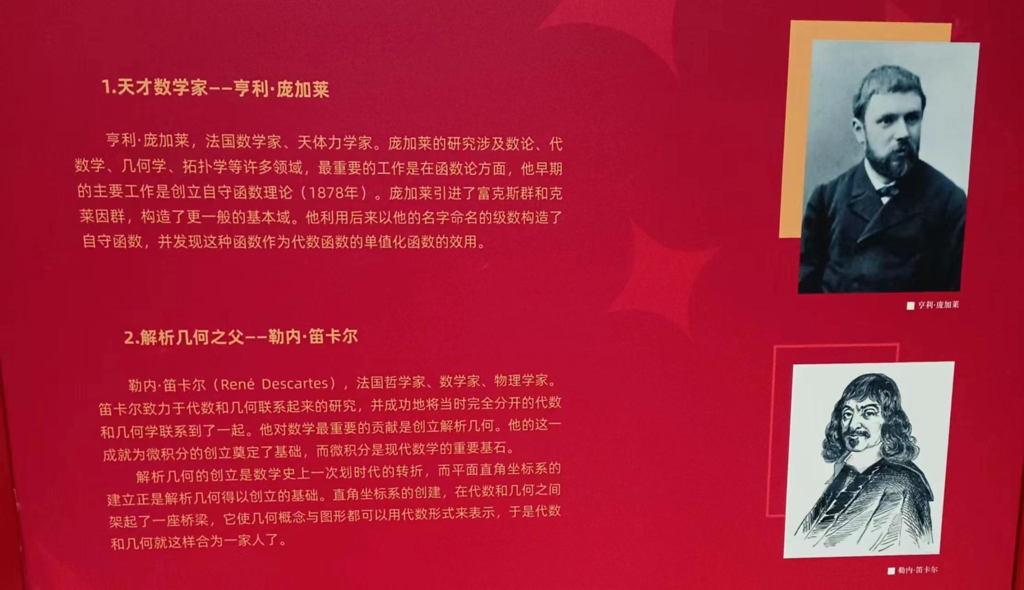 紧接着,大家一同参观学习了数学家简介板块。通过了解古今中外数学家们的探索故事和研究成果,同学们畅游在数学的殿堂中,感悟他们的伟大和睿智,体会醉心于数学的纯粹和质朴,也深深地启发大家践行追求真理,严谨笃学的数学家精神。
