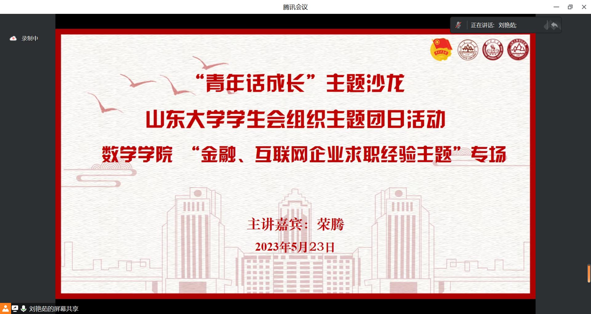 5月23日,申博sunbet研究生会功能型团支部组织开展“青年话成长”主题沙龙活动。本期沙龙活动以职业生涯规划为主题,围绕金融机构及互联网企业求职等内容,公司2020级优秀研究生代表参与交流分享,2021级、2022级部分硕士研究生参与主题沙龙。