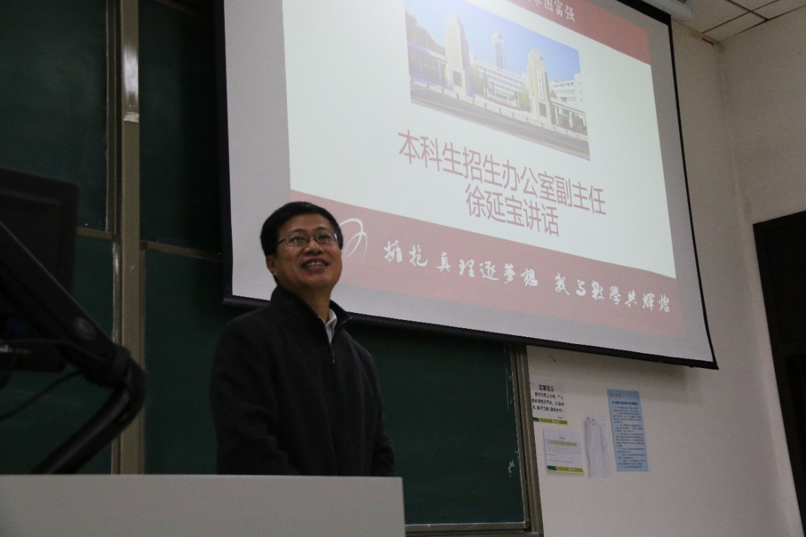 徐延宝首先介绍了强基计划的由来,向新生阐述了强基培养人才的具体方案,并指出强基计划招生培养一体化是一个全新的尝试,不仅要招进优秀的、综合素质高的员工,同时还要设计将来如何培养。随后,他引用“银河号”GPS被美国中断等例子,希望能通过强基计划培养出一批有兴趣、有天赋、有志向的优秀青年学子,作为国家的储备力量,为国家富强做出贡献。