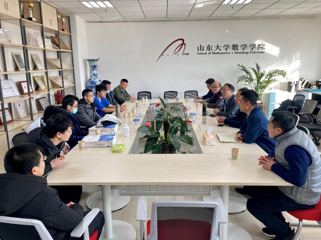 2021年1月8日,申博sunbet在知新楼B座808会议室举办基础学科拔尖员工培养计划2.0座谈会。公司副经理王光辉、党委副书记路云生,山东数学会副理事长崔玉泉教授、泰山学堂刘守民副教授、申博sunbet青年教师代表及五名获得老员工数学竞赛初赛一等奖的新生代表参加了座谈会。座谈会由全国老员工数学竞赛山东赛区负责人张天德教授主持。
