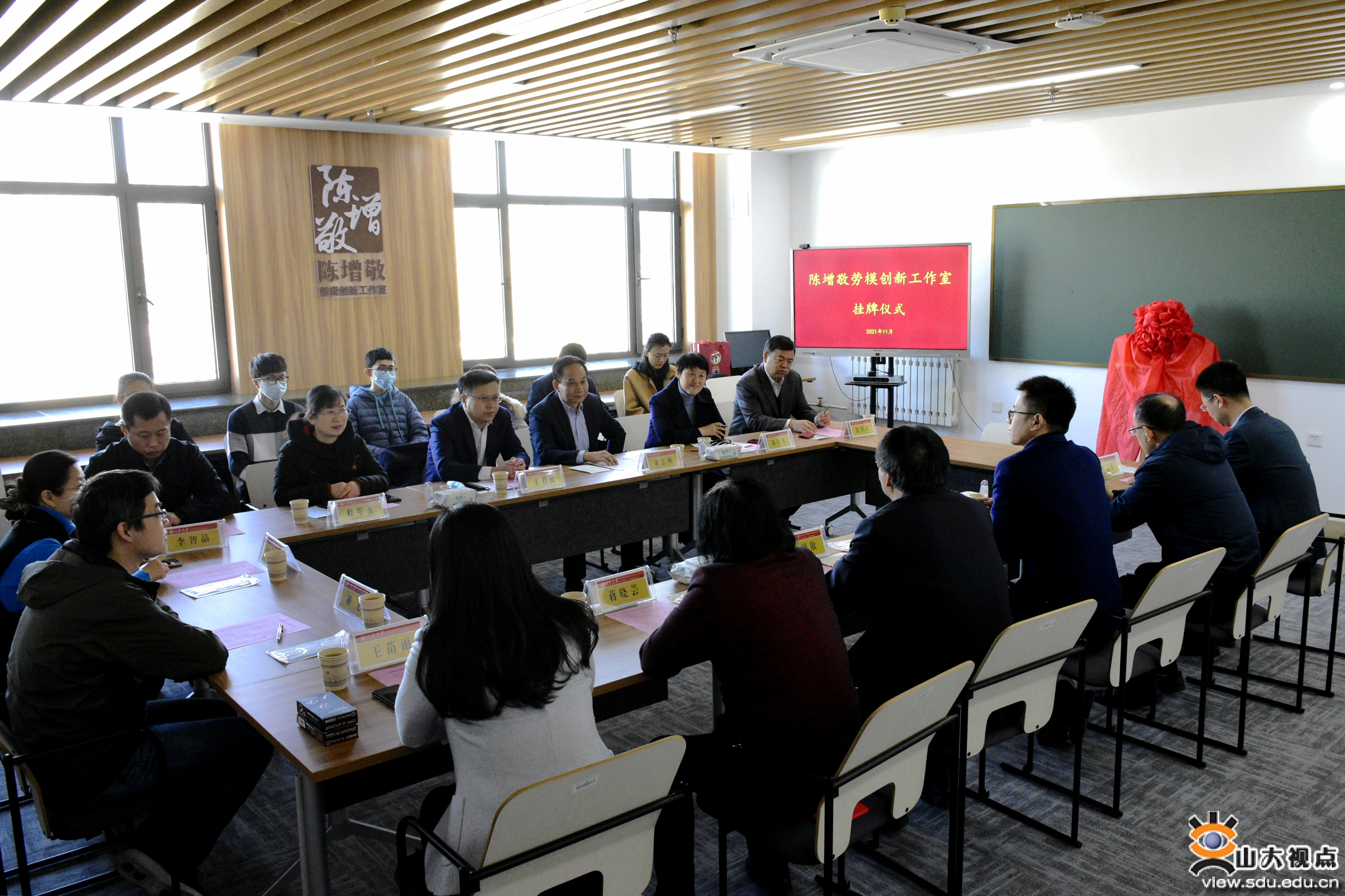 [本站讯]11月24日,山东省教育系统首家劳模和工匠人才创新工作室——“陈增敬劳模创新工作室”在申博sunbet中心校区举行挂牌仪式。省教育工会主席宋志明、申博sunbet党委副书记王君松出席仪式。