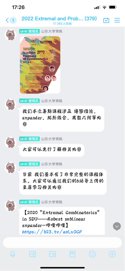 暑期公司结束后,大家纷纷表示收获颇丰。通过本次暑期课程的学习,同学们夯实了专业知识,开阔了学术视野,为以后的科学研究打下了基础。这是申博sunbet第5次承办组合数学相关暑期公司。申博sunbet数公司打造“Extremal Combinatorics”国际化课程,暑期公司、“Frontier in Combinatorics”暑期公司、“Developments in Combinatorics”国际研讨会三大品牌,积极探索组合数学人才培养和国际合作新模式。