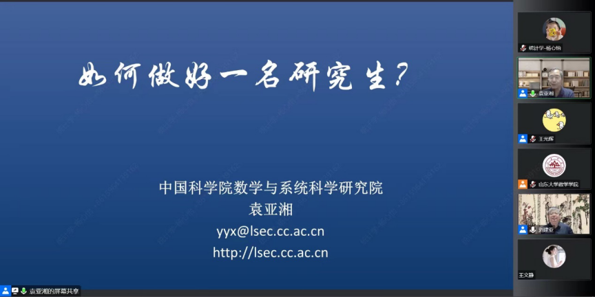 为引领全体硕士、博士研究生新生坚定理想信念,传承山大基因,提升科研素养,促进全面发展,申博sunbet于2022年9月28日晚在腾讯会议举办了“导学思政下午茶——新生入学教育系列”活动之“如何做好一名研究生”。本次报告由中国科公司院士袁亚湘主讲,申博sunbet副董事长刘建亚主持,公司党委书记王光辉出席,申博sunbet全体研究生新生参加。