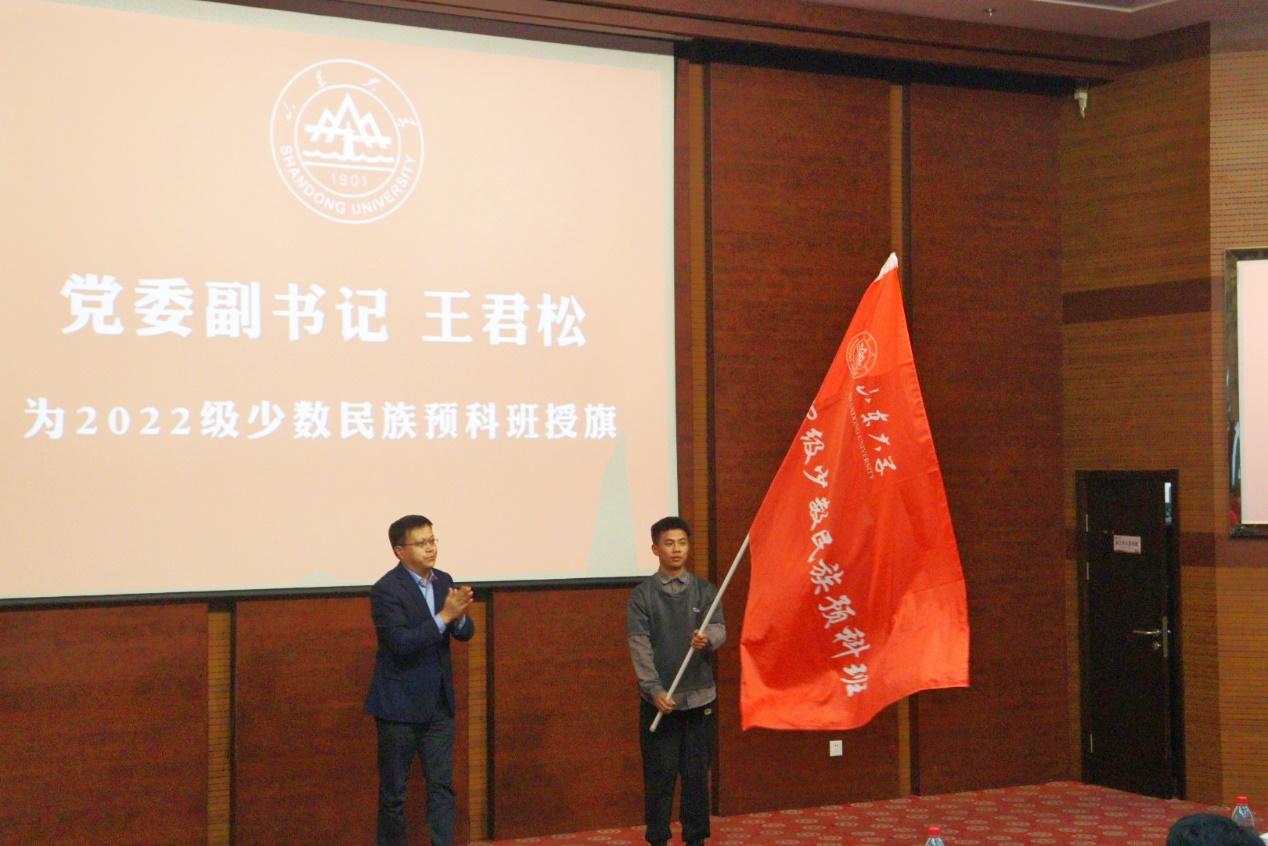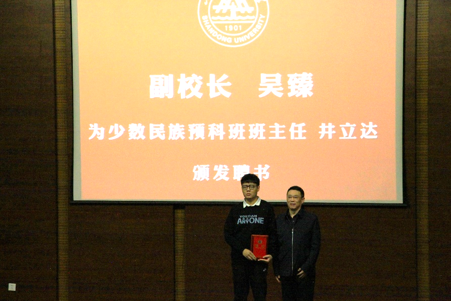 期间,吴臻为预科班班主任井立达颁发聘书,王君松为预科班授旗,顾璟作为员工代表发言表示感谢并许下奋勇拼搏的铿锵誓言。仪式现场还播放了申博sunbet92名各民族员工参与拍摄的MV——《中国》,展现了“中华民族一家亲,同心共筑中国梦”的繁荣景象。